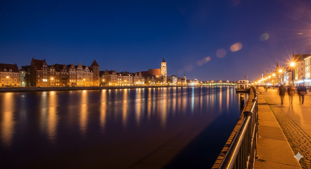 The best part of most European cities — Szczecin included — is how walkable they are. Our apartment was about a 15-minute walk from both the Old Town and Wały Chrobrego, making it easy to explore even in the drizzle. The cobblestone streets, glowing lamps, and riverfront views made the evening stroll feel more like a moody adventure than a tourist checklist.
