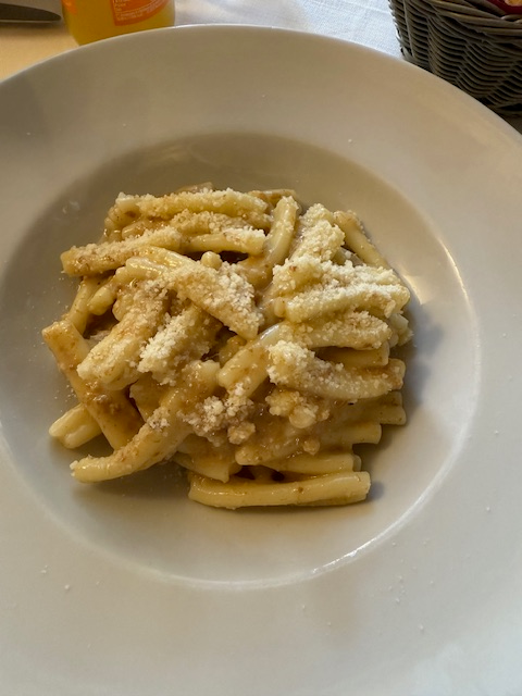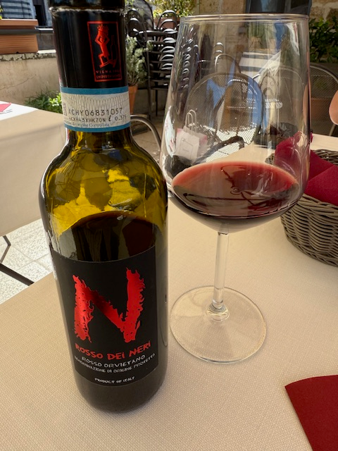 Start with a plate of umbrichelli al tartufo, a thick, handmade pasta tossed in rich truffle sauce. Or go all in with wild boar ragu, a local favorite that’s hearty, rustic, and deeply satisfying — especially when paired with a glass of Orvieto Rosso, the city’s underrated red wine. (Everyone who knows me knows I’ll always choose a red over white, and this one did not disappoint.) Yes, Orvieto is famous for its crisp white, but the red deserves just as much love.