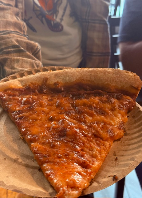 Next up was Joe’s Pizza, which has earned international fame (and a cameo in a Spider-Man movie). This slice was everything you want from the best New York style pizza: super thin, perfectly foldable, chewy in all the right ways, and again, very sauce-forward. For us, this was the standout pizza of the day.