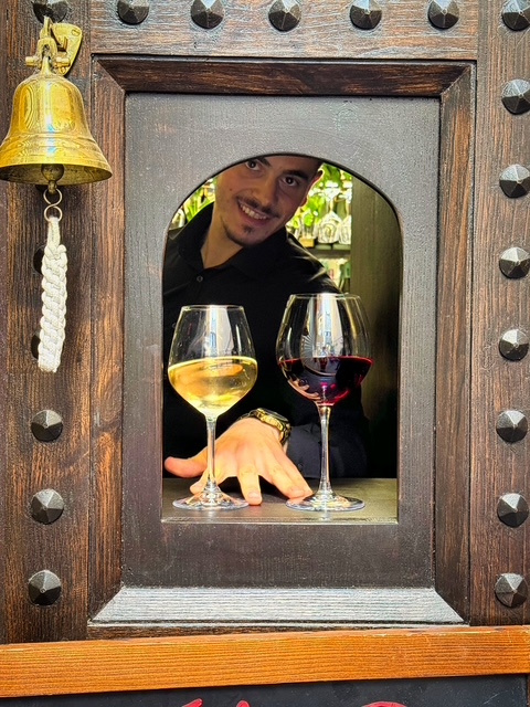 We finally found one at Enoteca, and the friendly server, who laughed that he does this about sixty times a day, kindly let me film the full “wine window moment.” I rang the bell and with a smile, he passed a glass of Chianti through the little wooden hatch like it was a secret handshake.