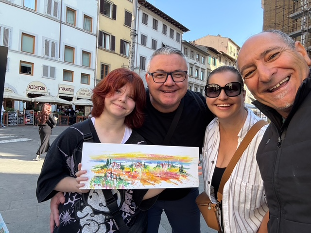 Update: We found the artist! His name is Stefano Zellini, and you can find his incredible work on Instagram and Facebook — highly recommend checking him out if you’re wandering through Florence’s San Lorenzo square.