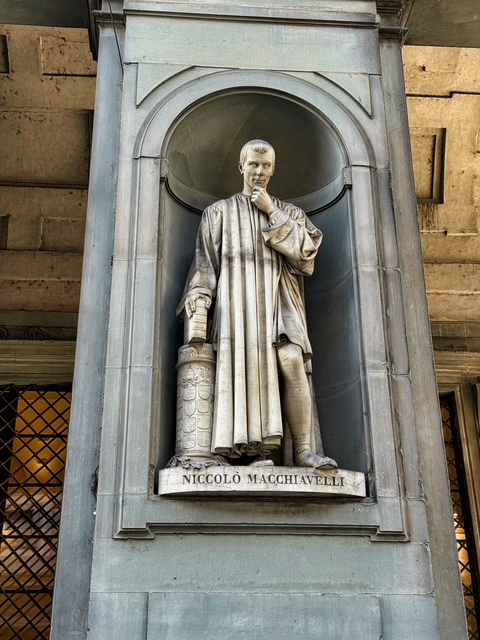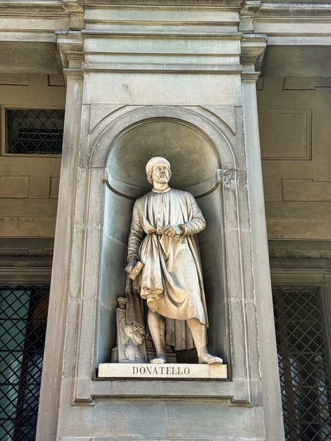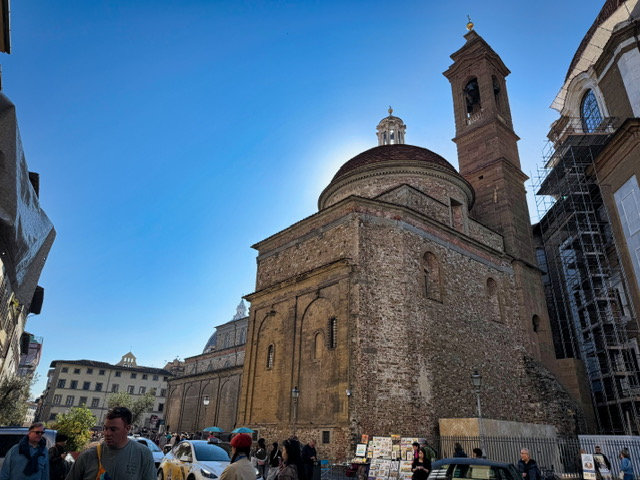 Next, we walked past the Medici Riccardi Palace — fitting, since we’ve been studying the Medici family and their enormous influence on Florence. The exterior was under renovation during our visit, so we couldn’t fully admire its Renaissance grandeur. It now serves as a museum, but we decided to skip going inside this time and simply admired what we could from the street.