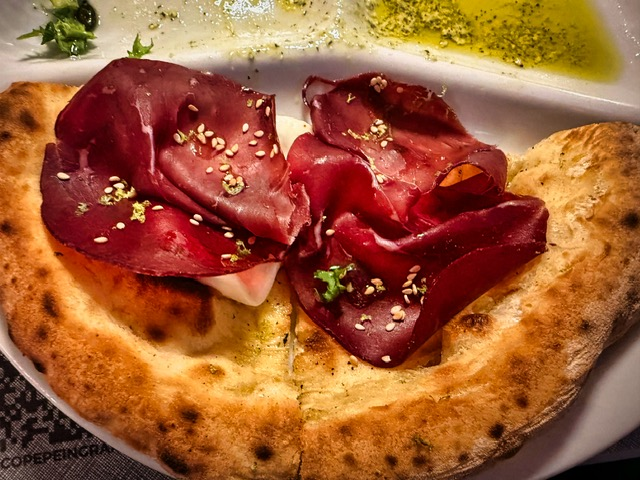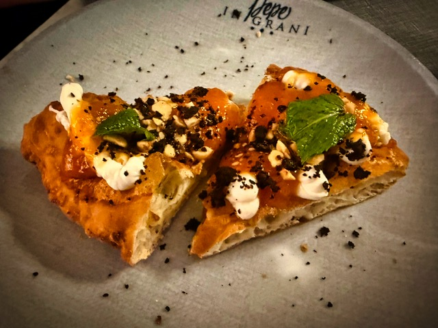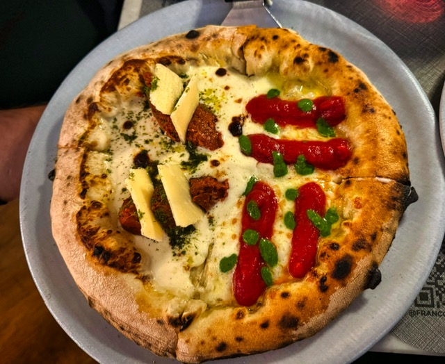 Pepe in Grani offers a pizza tasting menu that lets you experience the greatest hits of Franco Pepe’s creativity. You can either hand-pick the pizzas yourself or surrender fully and choose Chef’s Choice, allowing the kitchen to curate the experience for you. We opted for Chef’s Choice, and it absolutely was a journey—one where every stop surprised us.