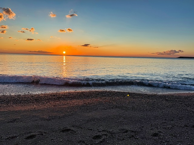 We stayed in a cozy little apartment called Zagre e Mare, just two blocks from the Mediterranean Sea. Every morning, we’d wander down to the boardwalk for a walk (or, let’s be honest, a slow, pre-coffee shuffle). If you’re an early riser — or can be bribed out of bed with the promise of something spectacular — the sunrise here is unreal. The sun comes up right over the water, painting everything gold and pink. Totally worth setting an alarm for.