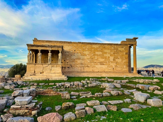 One of the most unique buildings on the Acropolis, the Erechtheion is famous for its Caryatids—six sculpted female figures used as columns. The originals are now safely in museums, but even the replicas are stunning. Elegant, haunting, and somehow still holding the roof after centuries.