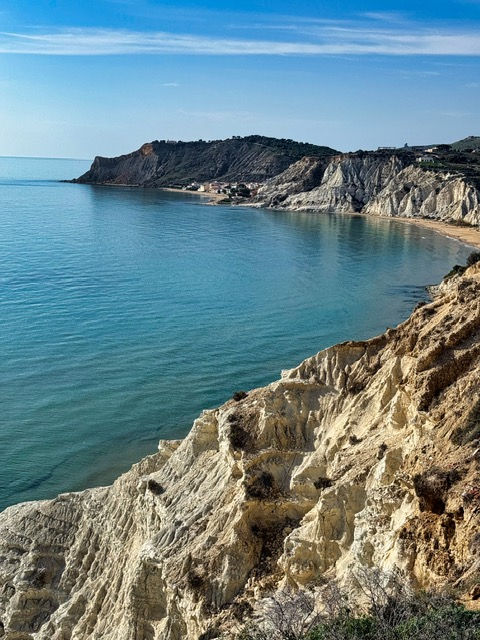 Nearby, the Scala dei Turchi (Turkish Steps) is a brilliant white limestone cliff that cascades into turquoise waters. It’s now closed to visitors for preservation, but we still saw people venturing out. We chose to admire it from above and save our energy for exploring the temples.